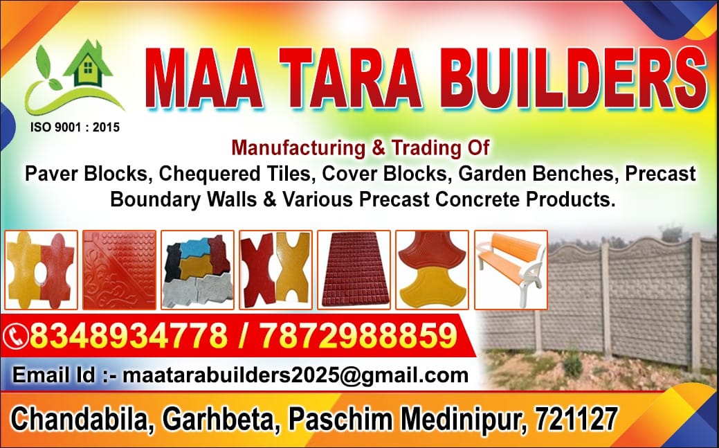 Maa Tara Builders, an ISO 9001:2015 certified company, is a trusted manufacturer of high-quality and cost-effective building materials. Our modern production facility is equipped with advanced technology and strict quality-control systems to deliver premium bricks, blocks, tiles, and pavers for residential and commercial projects.